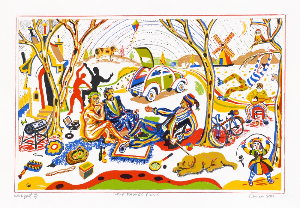 On the occasion of the exhibition’s quarter-millennium birthday, this year’s coordinator is Academician, Turner Prize winner and lovable National Treasure Grayson Perry, and his love of colour and keen, but largely benign, eye on the paradoxes of modern society and its social mores, has resulted in a significantly zhuzhed up show. It’s vibrant, witty and joyful, with much to amuse and delight, and also give pause for more serious reflection on where we are today: there are two works concerning Grenfell Tower and a Brexit piece by Bansky in the same room (its walls painted sunshine yellow) as a rather pompous picture of Nigel Farage (beneath – perhaps significantly, depending on how you wish to read it – a picture of a dog vomiting). These on point juxtapositions combined with a show pulsating with vivid colours, textures and vibrant imagination make this the best Summer Exhibition I have seen in years.