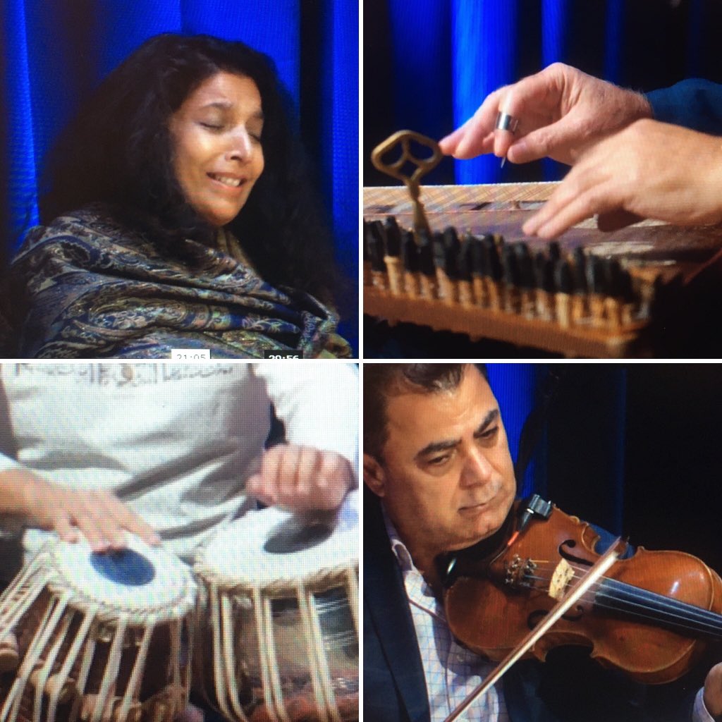 Some of the highlights of the entire festival for me lay amid these 10pm treasures. On a day devoted to the influence of the 14th-century Persian poet Hafez on more modern art song, the evening ended with an astonishing performance by The Voice of Santur, an Iranian quartet (voice, violin, tabla and qanun – a stringed instrument resembling an autoharp played across the lap, but with a deeper, percussive edge to its sound) playing settings of Hafez in their own tradition arranged or composed by their founder, Peyman Heydarian (who sadly couldn’t be at the concert himself). It was a fascinating reminder that ‘our’ classical is not everybody’s classical (similar to watching the online African Concert Series broadcasts earlier in the year): to my Western ears, I can certainly find enough entry-points to help me dive in – the fact it was still ‘art song’, poetry set to music; and the familiarity of the violin – but the rhythmic language in the tabla and qanun brought a wholly new form of sensuality and even danceability.