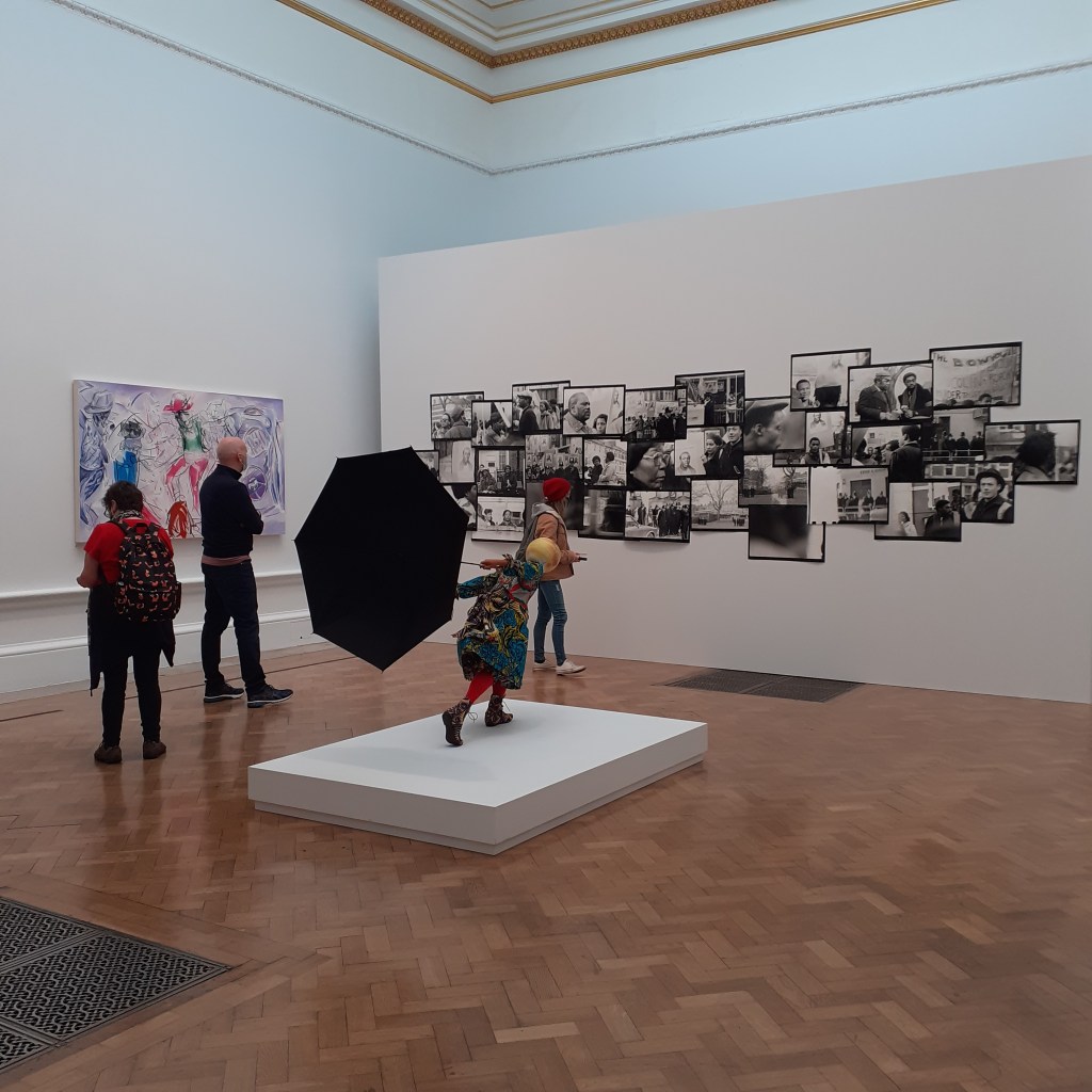 One criticism of the show this year is that the work does not respond to the immediate concerns of the day. At least, the first two galleries are promising. They give generous breathing space to work by Black academicians: Sonia Boyce, Frank Bowling and Yinka Shonibare, and other established Black artists. The work in these galleries was selected by Isaac Julian, who has submitted his own work: Lessons of the Hour, London 1983 – Who Killed Colin Roach? whose work reminds us, through a montage of photos, that Black people’s lack of faith and credibility in police justice is not just a recent phenomenon.