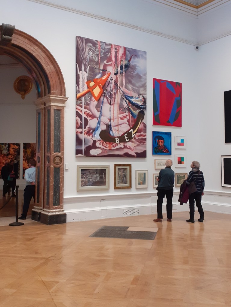 Perhaps it is the oddness of a lot of the art on view and the unruliness of the display at the RA summer exhibition that secures its charms, an antidote to the controlled presentation of contemporary art exhibitions where carefully curated works from an artist’s oeuvre are selected to persuade us to reconsider our views about it. At the RA there are no explanatory plates leading us in the right way to think about the artworks. You can wander around the galleries not knowing who has made a particular artwork because authorship is contained within the gallery guide which you have to buy or in the room guides (which this year were not available due to Covid restrictions) A rather fun game to play at the exhibition is the connoisseur game. Ditch the guide and try to distinguish the work of the established artists from the unknowns from the style of their work. There are often many surprises.