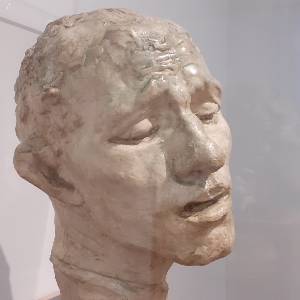 Comparing the plaster version of The Burghers of Calais to a bronze version, erected near the Houses of Parliament, the earthy lustre of the bronze, modified by the changing natural light, gives the figures an earthy naturalism. In plaster, in the controlled light of the gallery, they seem petrified. The dramatic vitality of the gestures of the sculptures are suspended by the inert quality of the plaster. This gives the sculptures on show an uncanny vitality; an unnerving contradiction.