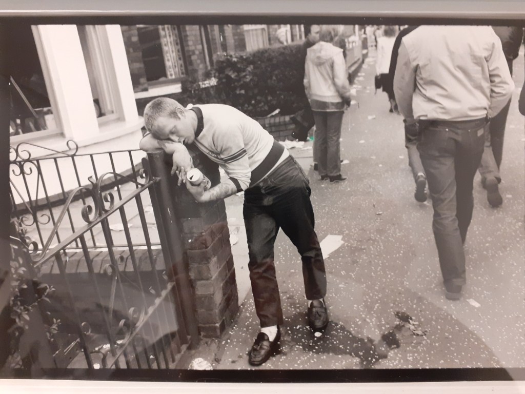 Gilles Peress’s black and white photographs are pictorial records of the history of the conflict in Northern Ireland. They cannot speak but they evoke the noise and chaos of his experience, and the many ways that the people of Northern Ireland involved themselves in conflict, entertained themselves or went about their daily lives during the Troubles. Peress took photographs in the streets of Belfast and Londonderry in the 1970s and 80s. His photos testify to the way that ordinary people adapted to a way of life underpinned by violent and extreme politics. Graffiti gathers in layers on the walls, children play in the street on a makeshift swing from a pole or drink lemonade at the wedding celebration of Prince Andrew and Fergie, teenagers snog near burning rubbish, men sleep on the grass after a parade, bands perform, boys stare at soldiers. The exhibition includes a selection of the thousands of images that are presented in the book Whatever You Say, Say Nothing and is a reminder of the legacy and continuation of colonial rule in the northern tip of Ireland and the impact that it has had on both Protestants and Catholic people. The publication includes two volumes of photographs and a companion almanac of contextual material, Annals of the North. The photographs are arranged according to a series of twenty-two ‘semi-fictional days’ – a kind of diary of Peress’s experiences where he strived to ‘describe Everything’ without trying to establish a single narrative. This sense of chronological dislocation is reflected in the exhibition layout. The wall text that accompanies each series of photos describes random thoughts and memories of the time that Peress spent in Northern Ireland. A selection of the photos from the publication are displayed in a variety of ways to reflect the protean nature of his account.