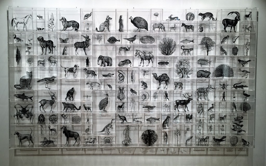 I find that I respond most strongly to Ben-David’s art where it seems to intersect with graphic design and illustration. The latest work on display is directly influenced by images from Kew’s own archive of botanical art, and ‘case of curiosities’ installations call to mind the intricate beauty of line drawings from historical science and natural history tomes.