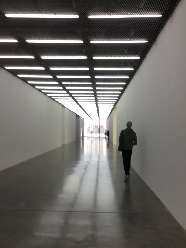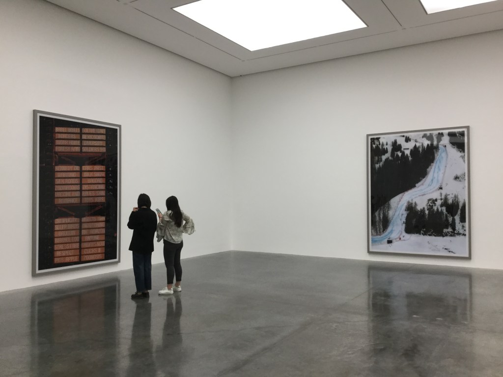 Some images surprised me, as if Gursky was deliberately wrong-footing viewers’ expectations in some of the selections on display. Two images of the Hong Kong Shanghai Bank – hung so you couldn’t view them together – illustrated this. Both feature the same architectural section of the building, with a huge screen. On one, this screen was filled with umbrellas, drawing out the textbook abstract feel of so many Gursky images. However, the partner painting showed the screen displaying what seemed like random words and phrases. My best guess is that they were the names of stocks, but writ large in this way, with no context, they helped to create a truly alienating, future-now shot.