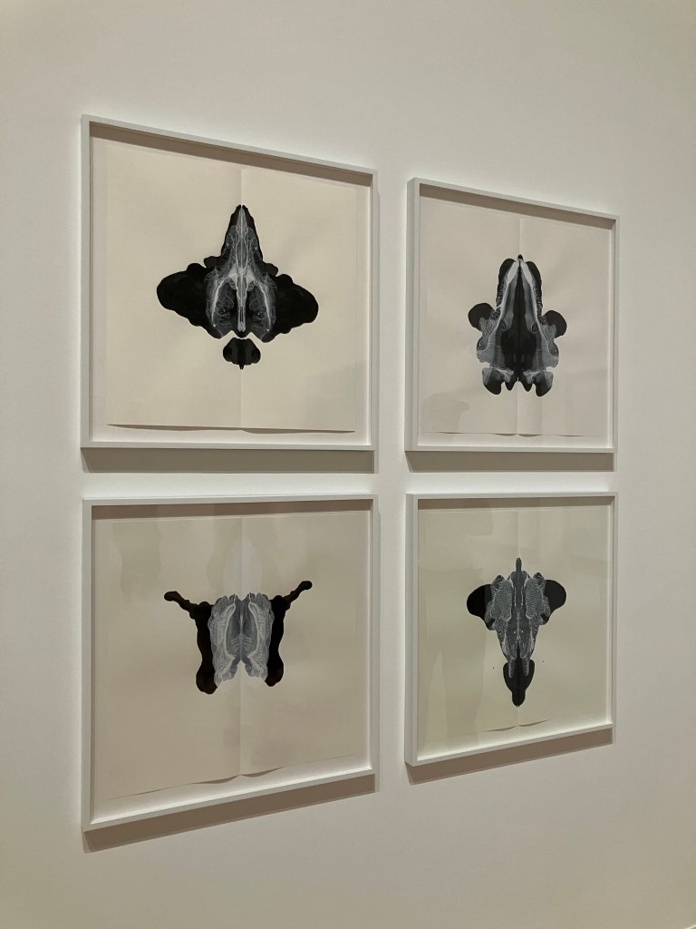 Likewise, a set of abstract pictures resembling Rorschach patterns turn out to be treated combinations of snake venom (coloured black) and its antidote (coloured white), balancing each image in a state between deadly and harmless, creating a kind of fascinated revulsion, suspense in both object and viewer.