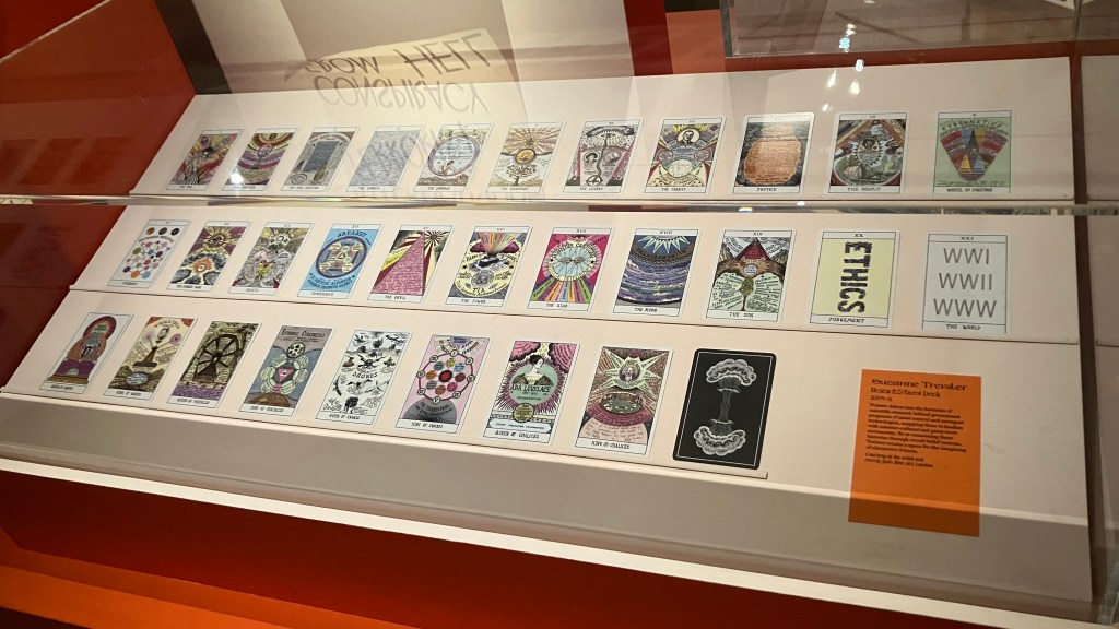 Emergency! Emergency! I made it to this show unforgivably late in the run, and at the time of writing it only has a week remaining. If you’re in or near London and can find the time, I would recommend it purely for the heady, intense experience it offers. Failing that, I hope you find the photo record I’ve made below gives you a flavour of the show – and the accompanying book is something of an artefact in itself, well worth seeking out.