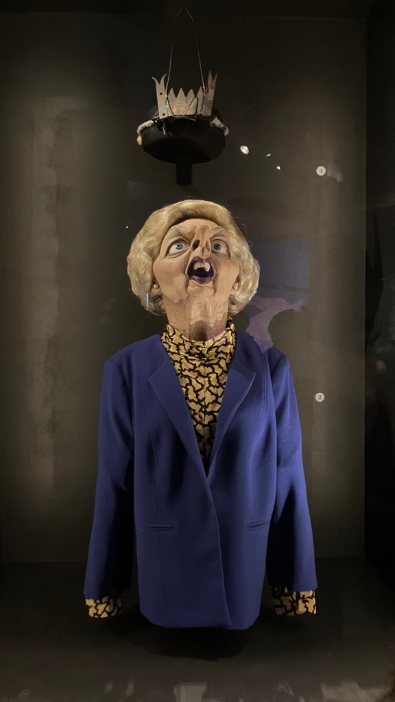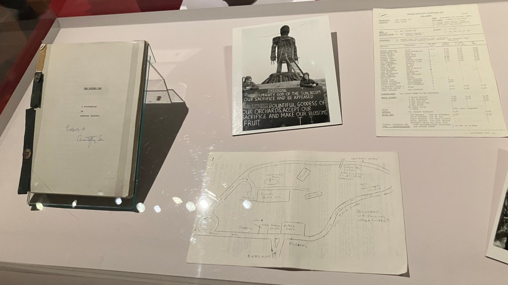 Witch was the least focused area for me. The show didn’t shy away from the more erotic elements of paganism or witchcraft, but to me it felt there was a kind of seedy-British, low-rent aspect to some of this stuff, particularly when presented in the guise of apparent empowerment. With the thesis of the exhibition so UK-dependent, this part suffered: I remember thinking specifically of two US films, ‘Midsommar’ and especially ‘The Love Witch’, that could have sold this idea more effectively. But for anyone into their occult / folk horror, it was an undoubted thrill to see items like the mask from ‘Kill List’, the puppet from ‘Possum’, or behind-the-scenes ephemera from ‘The Wicker Man’.