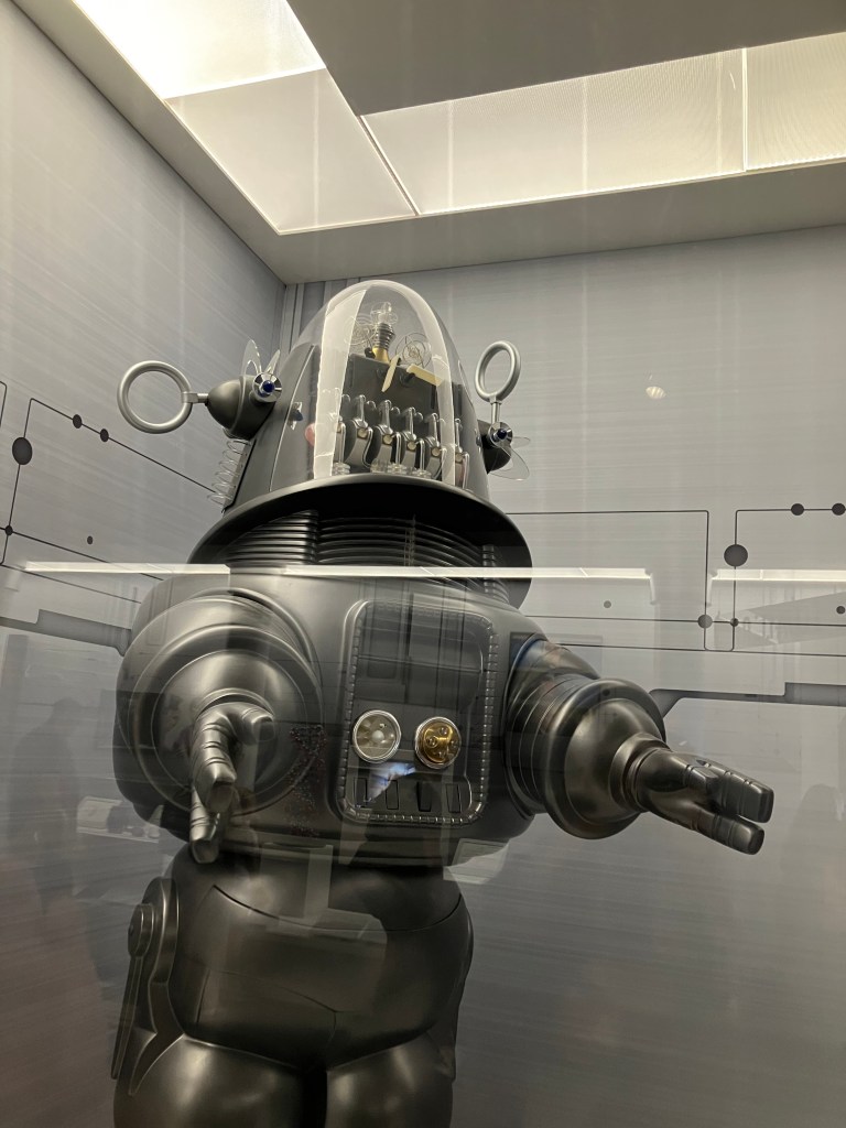 But in fact, this is the curators skilfully having their cake and eating it. As Darth Vader’s helmet snuggles up next to Iron Man’s suit, it’s clear the exhibition is aimed at children of both the past and present. Whose nostalgia circuits wouldn’t be blown at the sight of Robbie the Robot from ‘Forbidden Planet’, or the old ‘Star Trek’ tricorder?
