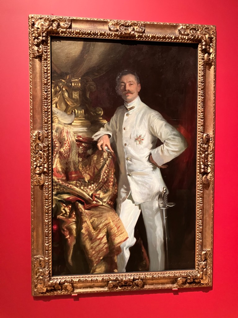 The word ‘fashion’ of course evokes clothing, but also the popular customs and practices of the time, and how these ideas interact with each other. The exhibition is alive to all these angles, and the accompanying captions often draw out how the sitters’ outfits reflect how they would want to be ‘seen’, or how Sargent might want to portray them.